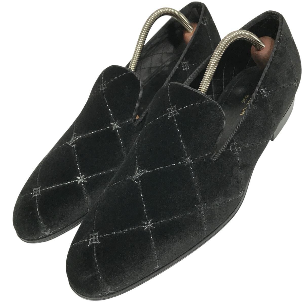 > 未使用品【ルイヴィトン】本物 LOUIS VUITTON 靴 26cm オートゥイユライン LVロゴ オペラ ローファー スリッポン シューズ ベロア メンズ 7