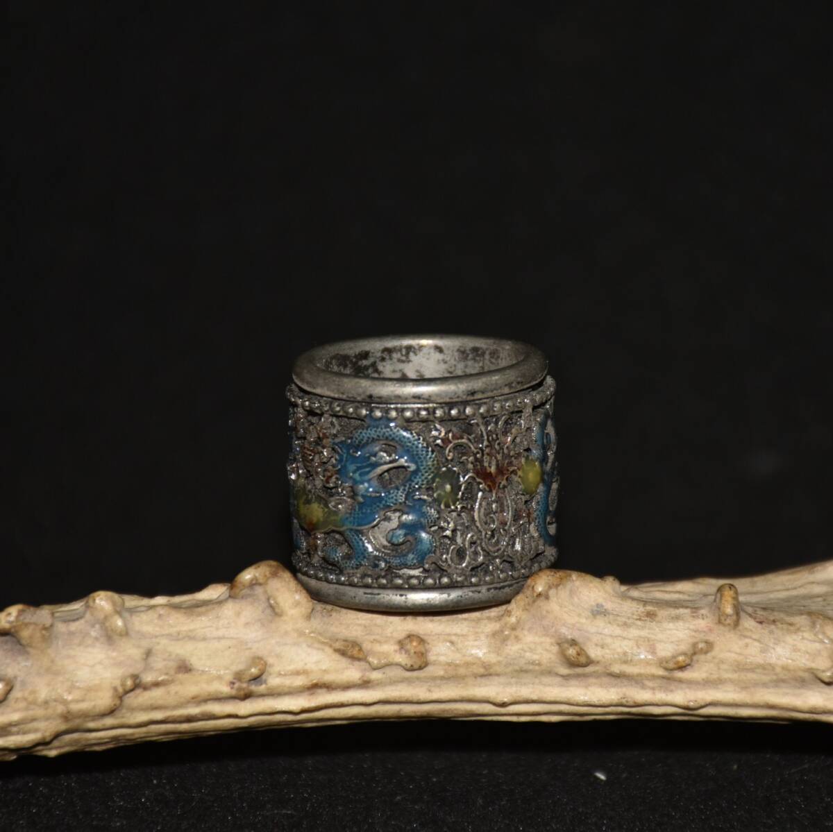 - 『館蔵珍品 白銅製 景泰藍 琺瑯彩 龍戲珠紋 指輪 根付 裝身具』稀少珍蔵品 古賞物 貴重物品 収蔵品 中国古美術 時代物 古董品