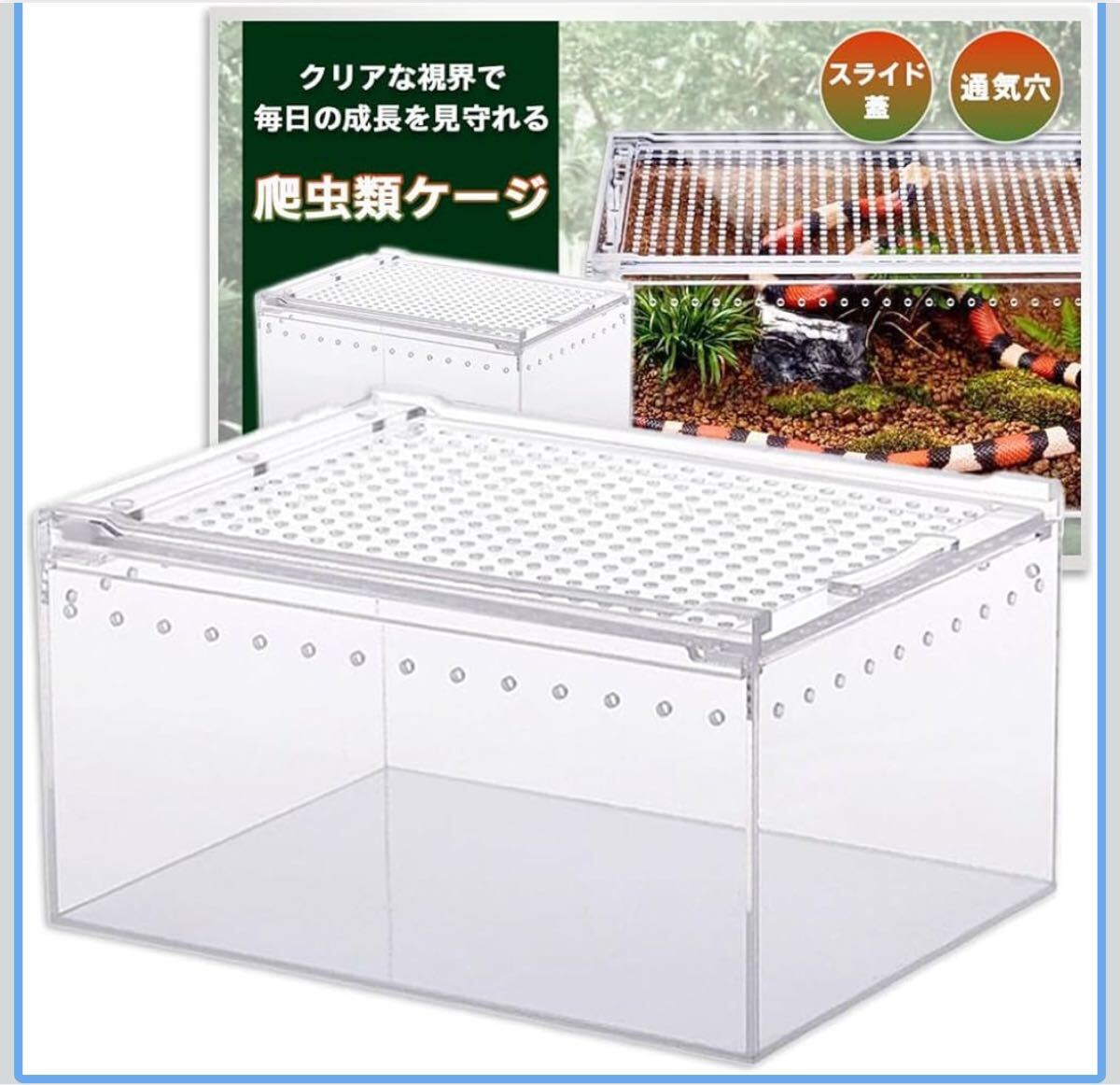 - 爬虫類 ケージ レプタイルボックス 飼育 レオパ カナヘビ トカゲ イモリ ヤモリ クモ スライド蓋 通気穴あり 幅40cm奥行25cm高さ20cm