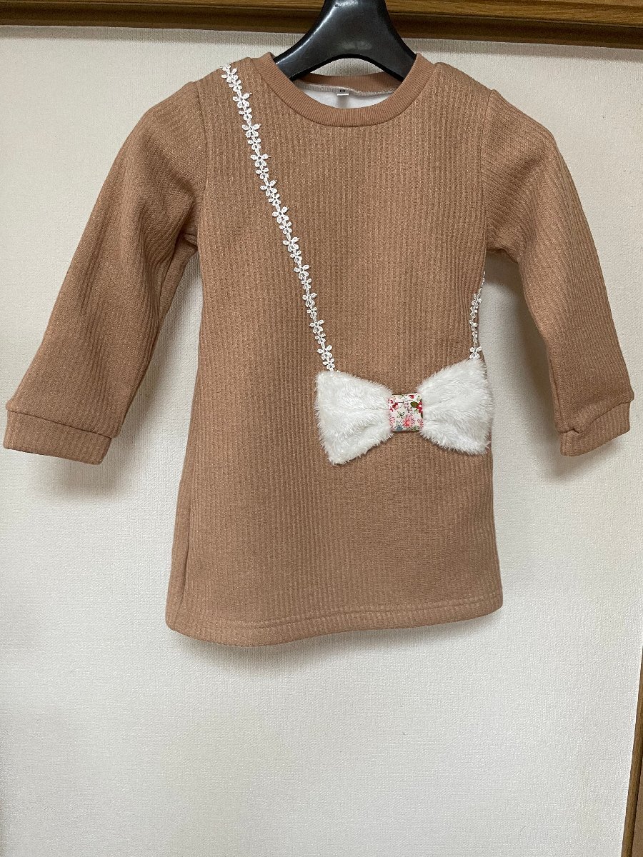 > [ 子供服] チュニック 長袖 [ サイズ: 110] 薄ブラウン系 裏起毛 冬服 送料別( レターパックプラス\300) n67