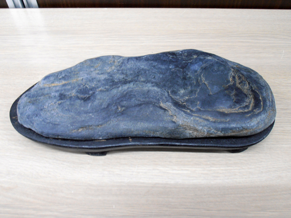 神居古潭石 水石 観賞石 台座付き 油石 盆石 重量約1372g 自然石 現状品 島型石 苫小牧西店