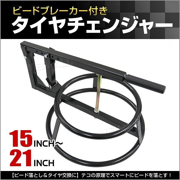 > タイヤチェンジャー 15~21インチ 手動式 ビードブレーカー タイヤ落とし タイヤ交換 黒/ブラック ロングレバー採用 タイヤ ホイール 交換