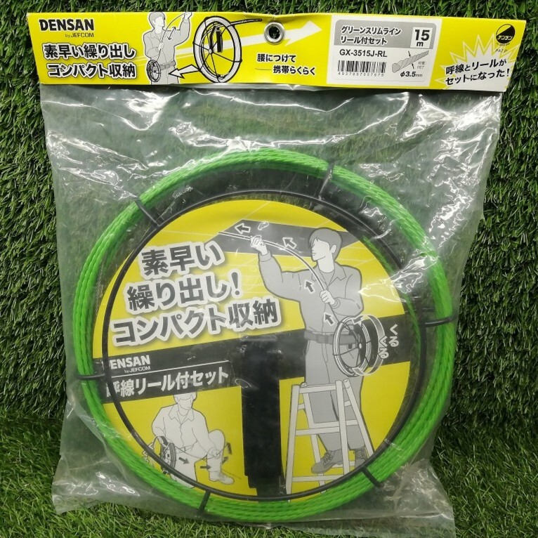 - 未開封品 DENSAN デンサン φ3.5mm 長さ15m 呼線リール付きセット グリーンスリムライン GX-3515J-RL