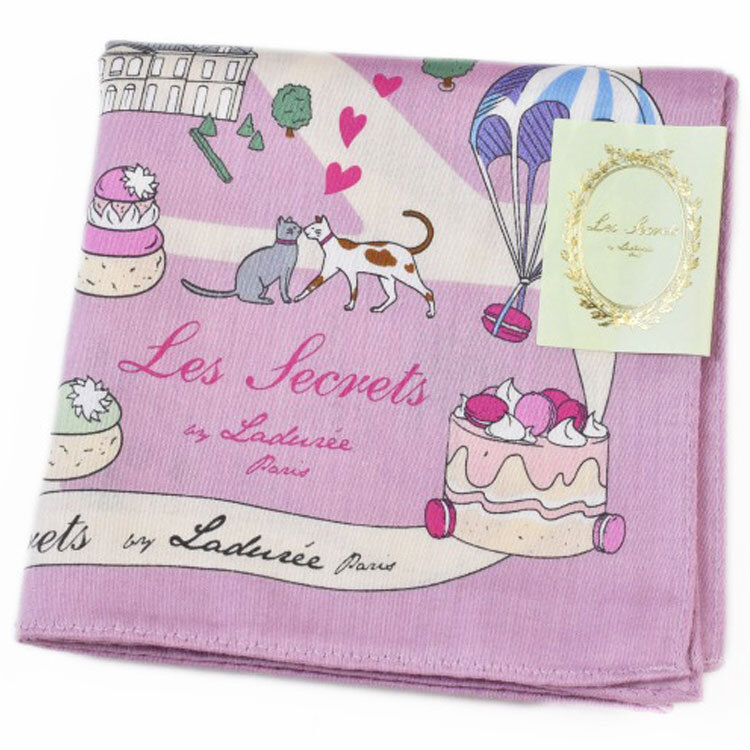 - ラデュレ ハンカチ 1枚 レディース ブランドライトパープル マップ プリント ロゴ 女性 婦人