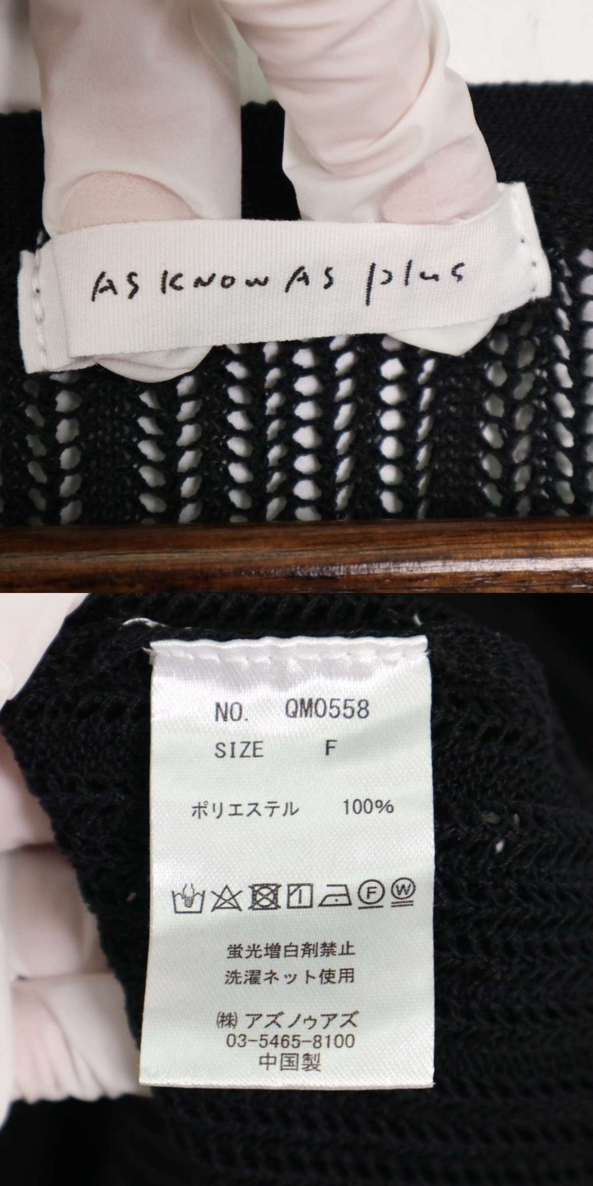 > AS KNOW AS plus アズノウアズ プラス 春夏★ シアー ニット ロング カーディガン 羽織り Sz.F レディース 黒