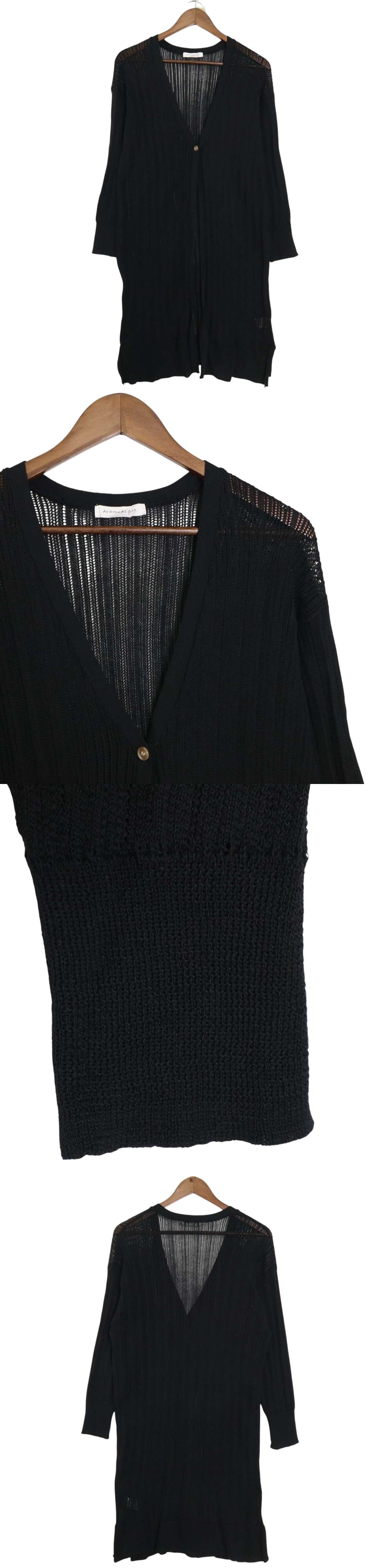 - AS KNOW AS plus アズノウアズ プラス 春夏★ シアー ニット ロング カーディガン 羽織り Sz.F レディース 黒