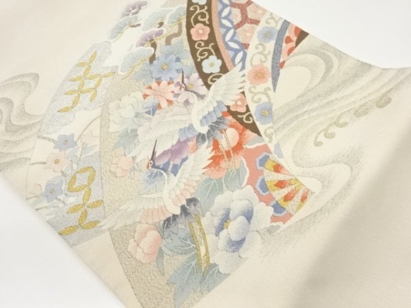 - ys7525649; 宗sou 綴れ鶴に草花・流水・古典柄模様織出し名古屋帯【着】