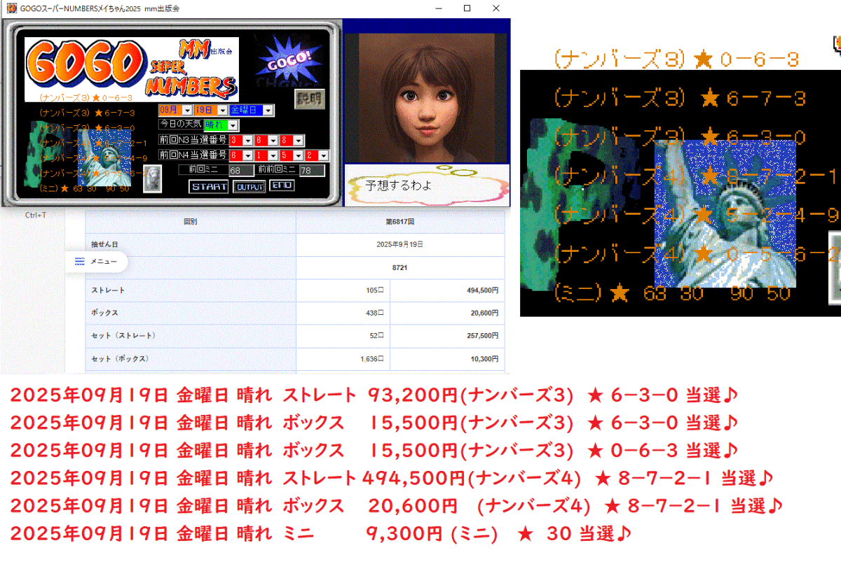 - 新作ナンバーズソフト『★ GOGOスーパーNUMBERSメイちゃん2025』2025年09月19日ストレート 494,500円(ナンバーズ4) 当選♪