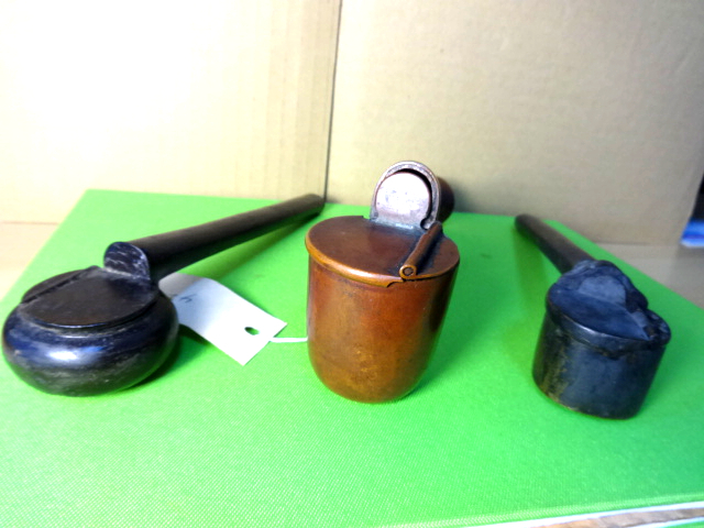 - 銅器 饅頭と太鼓形 矢立 筆入れ 江戸時代の萬年筆 合計3個でレタパ600可能