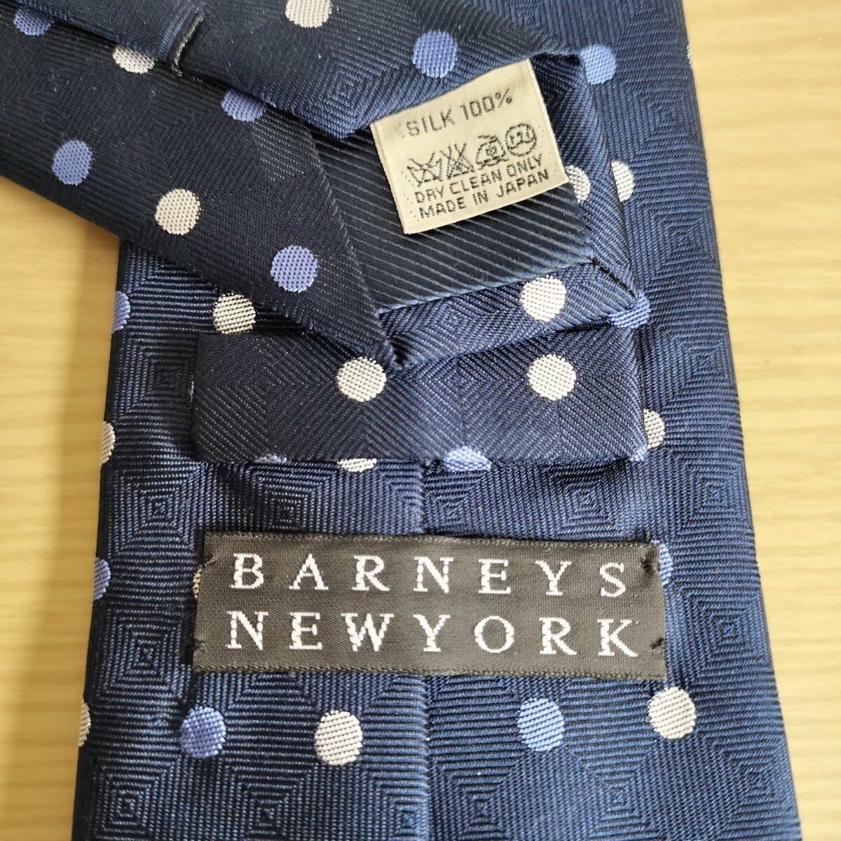 - バーニーズニューヨーク( BARNEYS NEW YORK)紺色水色シルバー丸ドット模様ネクタイ