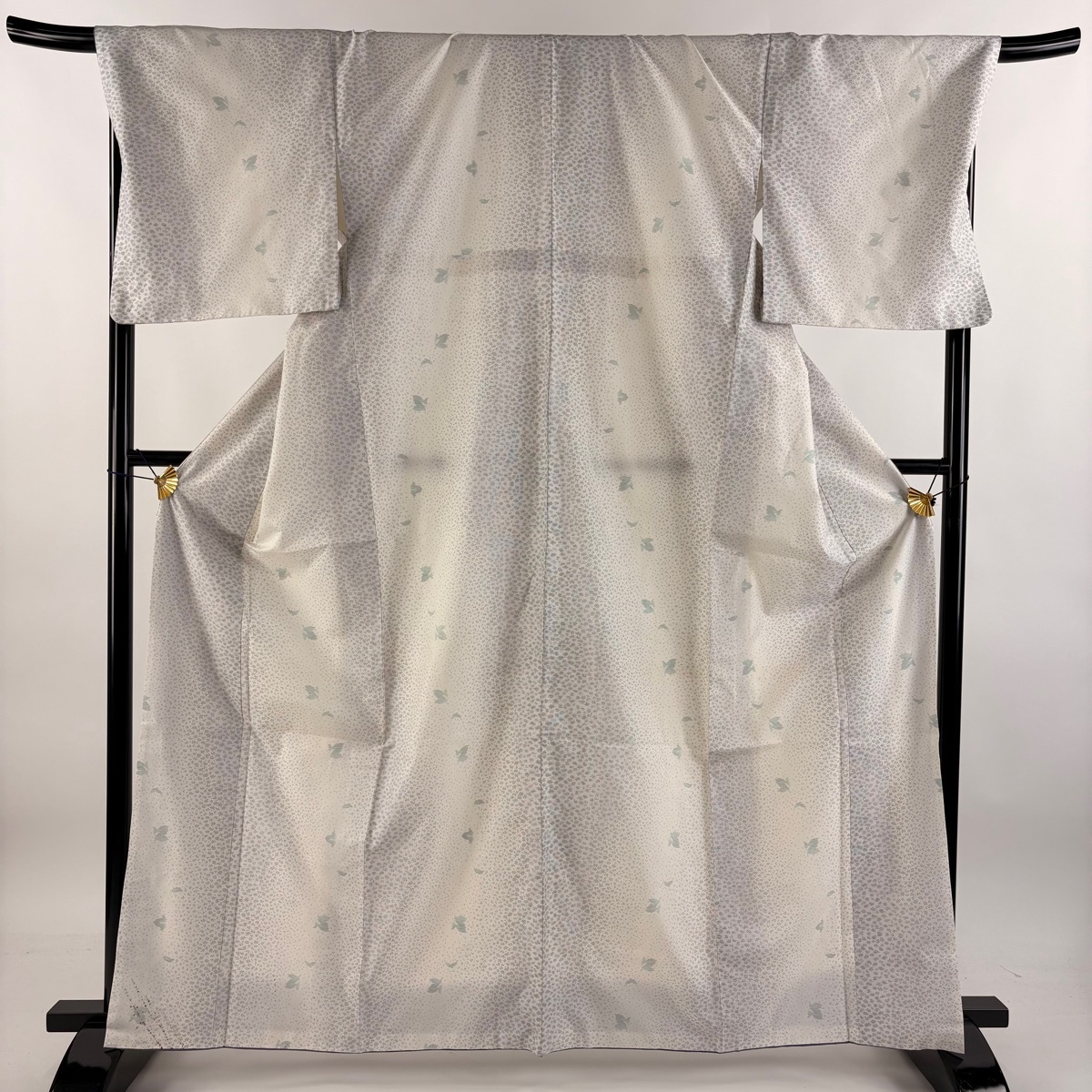 - 紬 身丈164cm 裄丈71.5cm L 袷 やまと 葉 灰白 正絹 秀品 【中古】