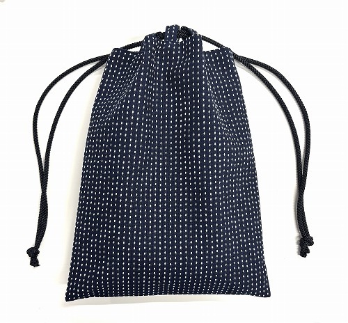 - [江戸てん]刺子信玄袋 御朱印帳袋 合切袋 日本製刺し子 綿100% 巾着 紺×黒紐
