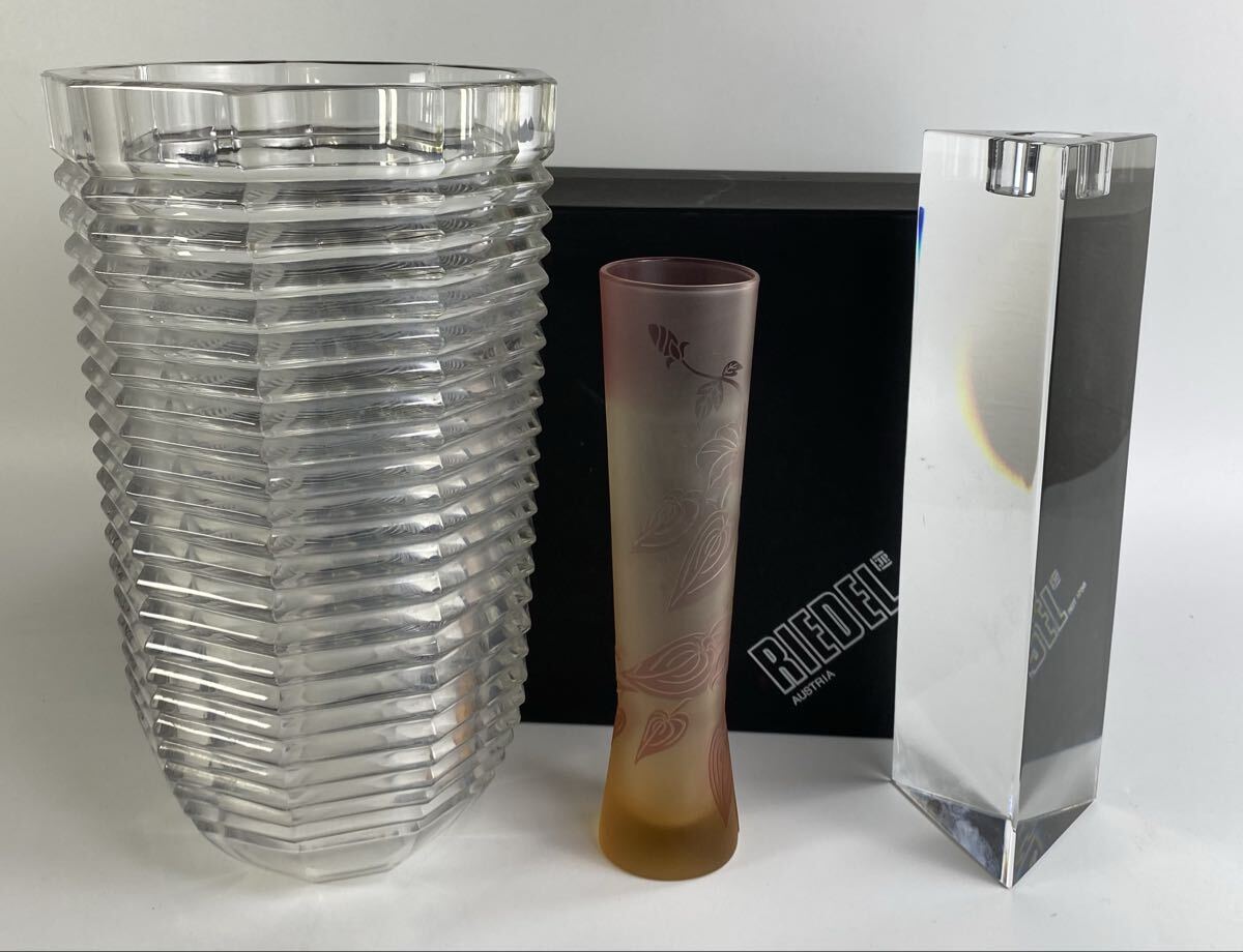 - ★Riedel★リーデル 花瓶 クリスタル 花柄 ピンク 他 インテリア 現状品 箱付 3点 まとめ★795-4/flok★ef688