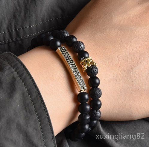 - 新販売★2連 ブレスレット 摩砂石&火山石ミックス メンズ パワーストン 男女兼用 アクセサリー