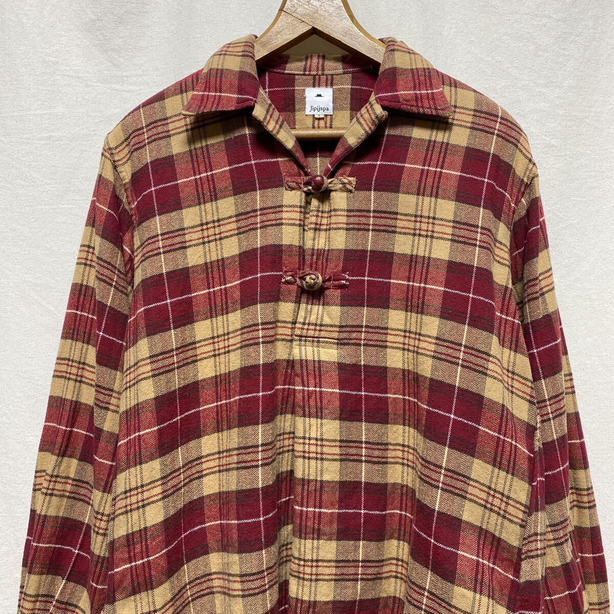 - Jipijapa ネルチェック チャイナボタン プルオーバーシャツ ヒピハパ 長袖シャツ ネルシャツ チェックシャツ 日本製