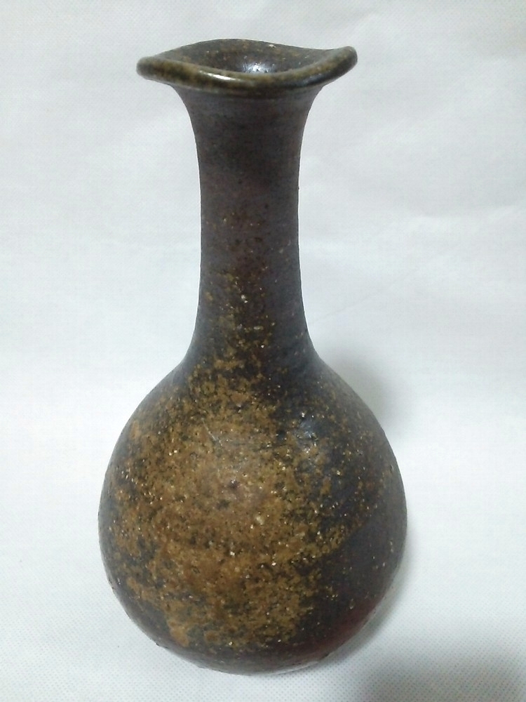 - ★【一美堂】★備前焼★山下譲治作★焼締『花瓶』花入★名品★高22cm★共箱付★