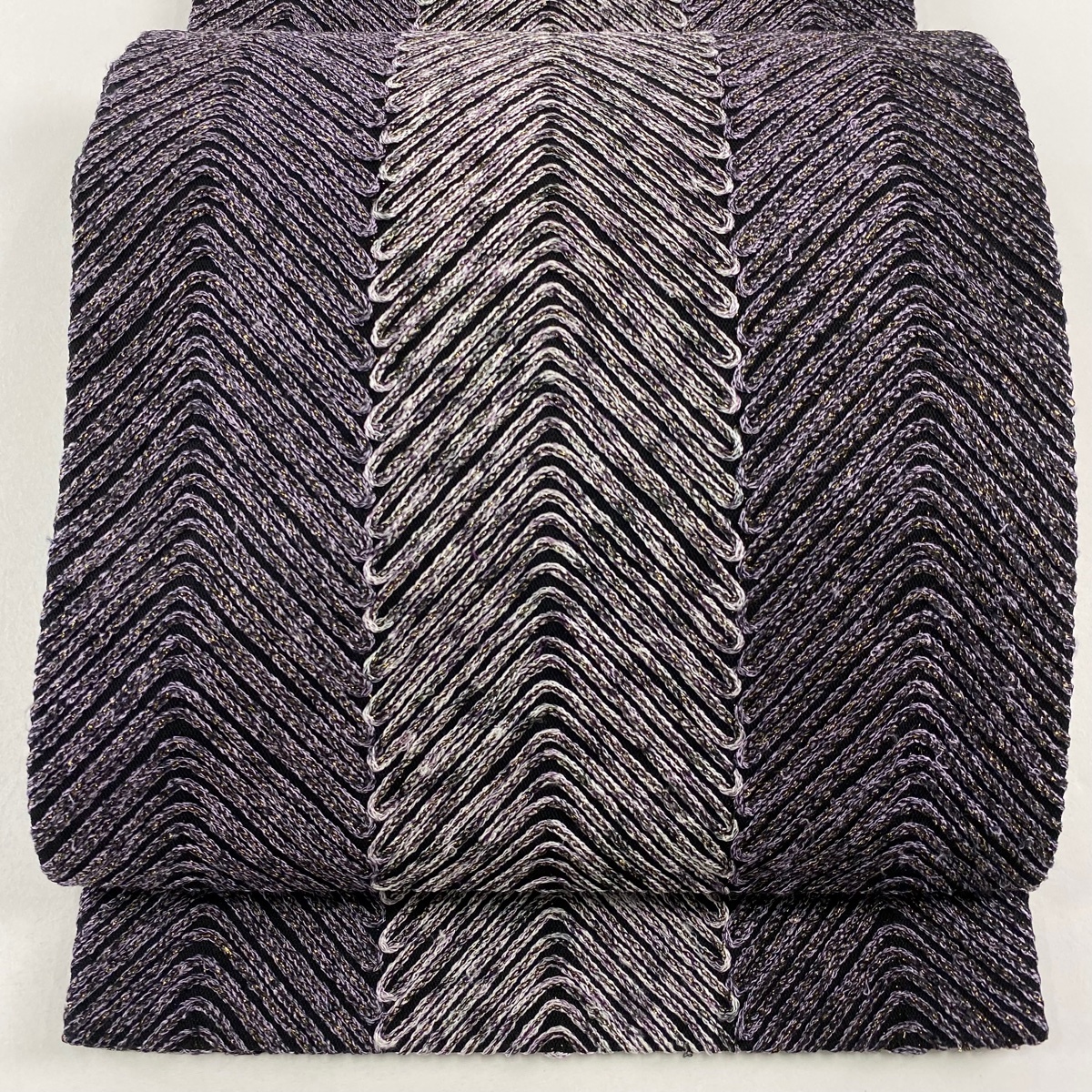 > 袋帯 名品 無月 落款 幾何学模様 箔 紫 全通 正絹 【中古】