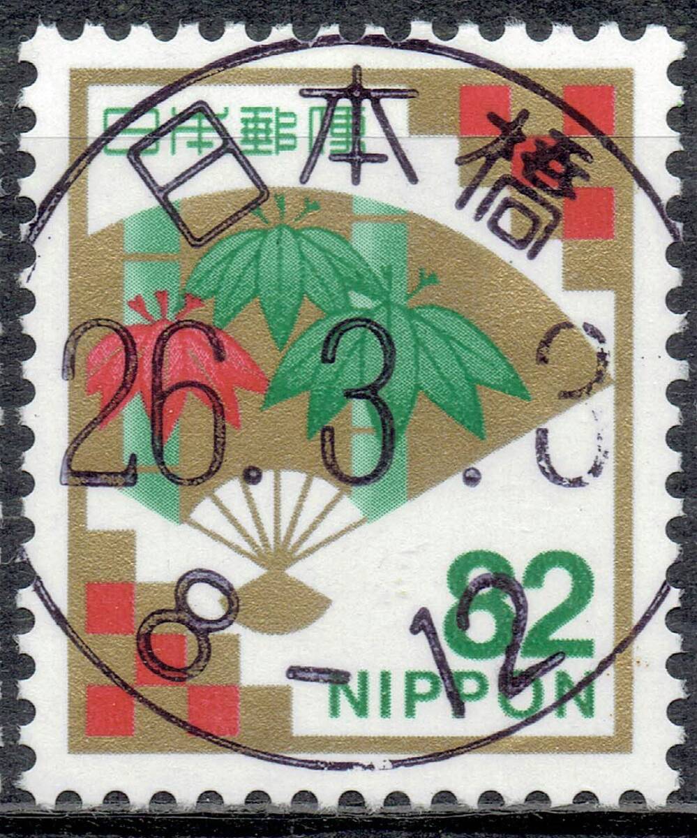 - 【使用済・初日印】慶弔切手・扇面に竹模様52円(満月印)ぐ