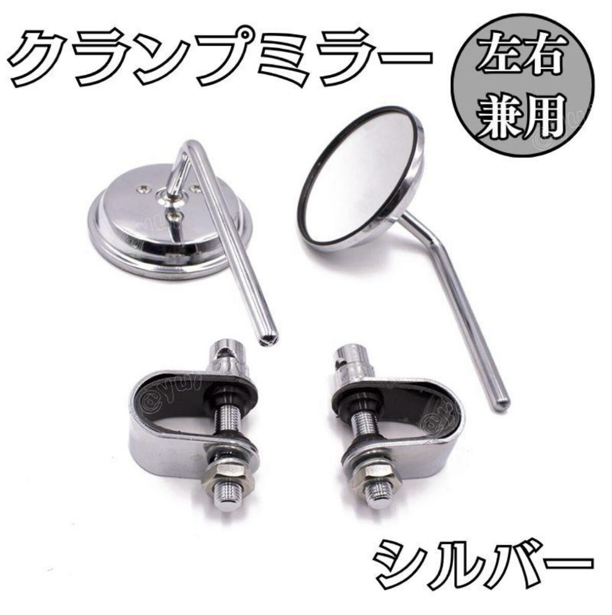 - クランプミラー ラウンドミラー シルバー 汎用 丸型 ショート 2本セット 丸ミラー アメリカン メッキ