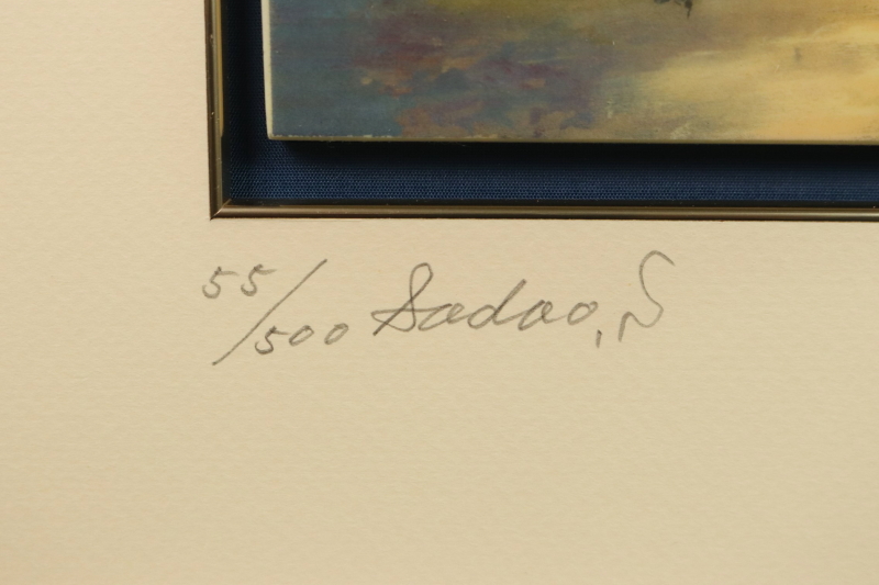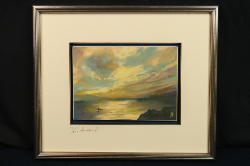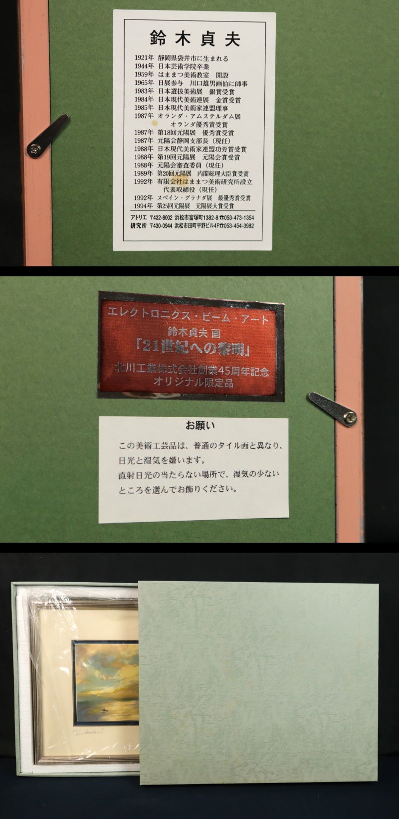 > 10793■【真作】鈴木貞夫 「21世紀への黎明」 陶板 印刷 限定500部 直筆サイン 川口雄男に師事 元陽会審査委員 静岡の人 額装