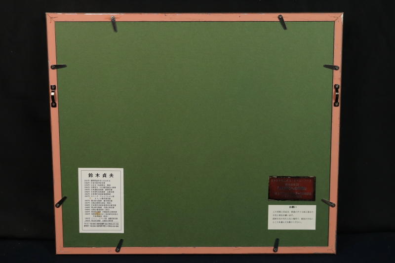 - 10793■【真作】鈴木貞夫 「21世紀への黎明」 陶板 印刷 限定500部 直筆サイン 川口雄男に師事 元陽会審査委員 静岡の人 額装