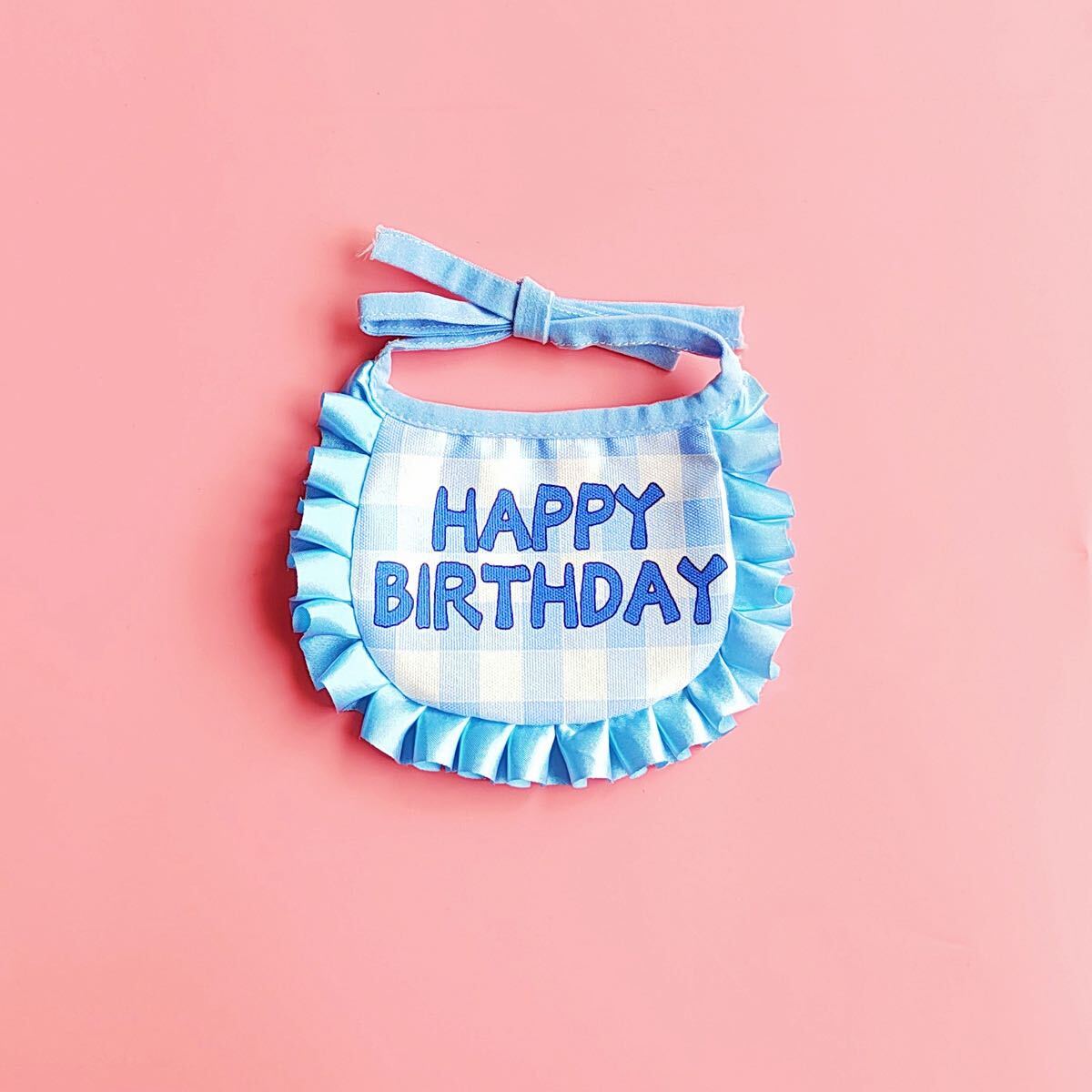 - 【水色】HAPPY BIRTHDAYスタイ バンダナ 赤ちゃん 犬 猫 フリル
