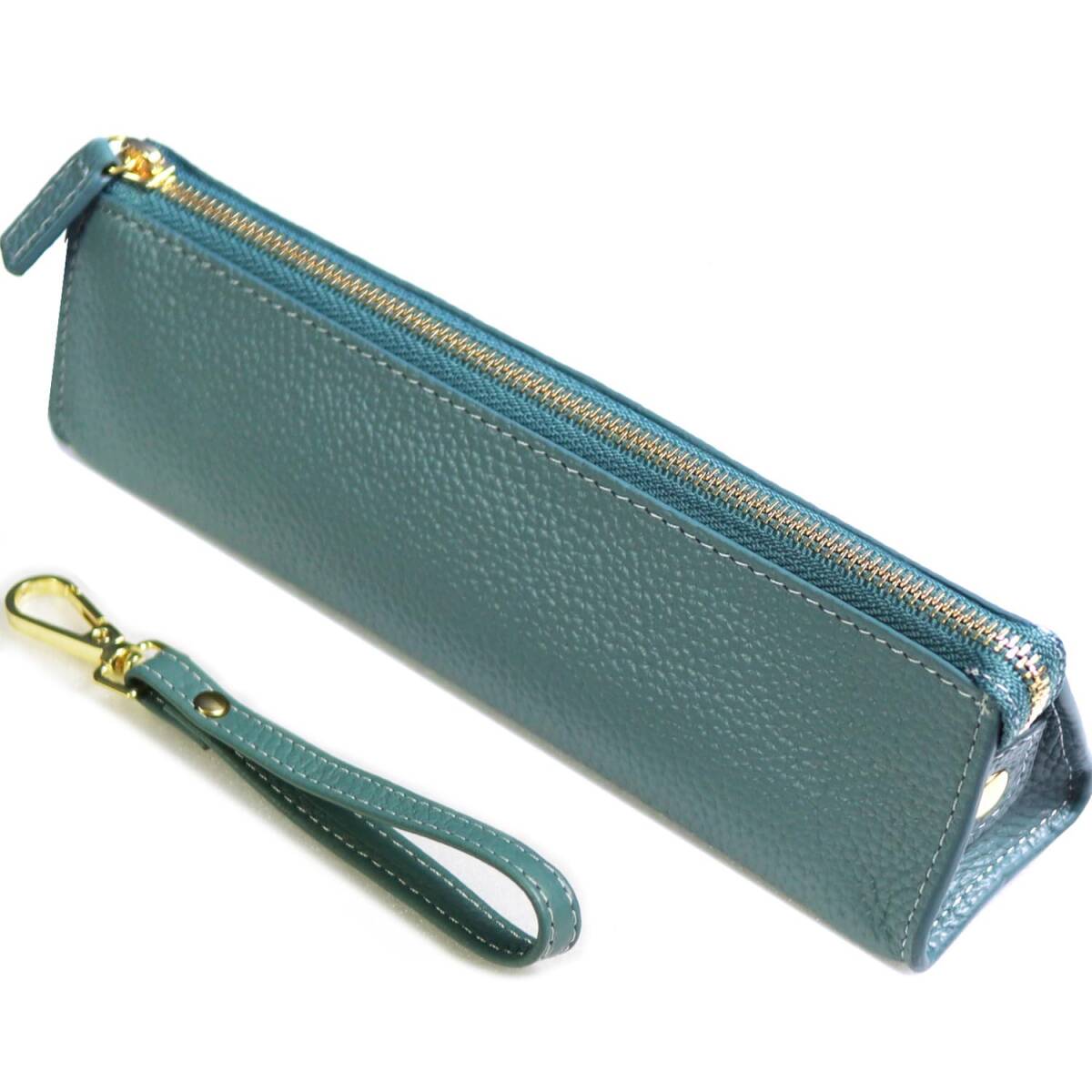 - レディース メンズ YKKファスナー 大容量 レザー 大人 ペンケース ペンケース スリム 本革 GiftBox付き 筆箱 (ブル