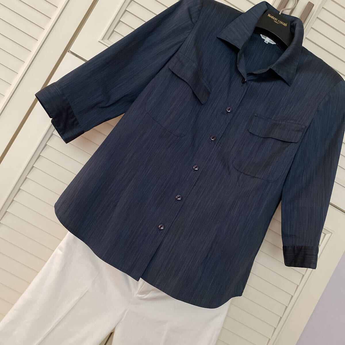 > 新品同様品!!!!HARDY AMIES!!!シンプルなお洒落な素敵な7分袖8部袖シャツ。ブラウス。ジャケット。カーディガン -送料込みです。。