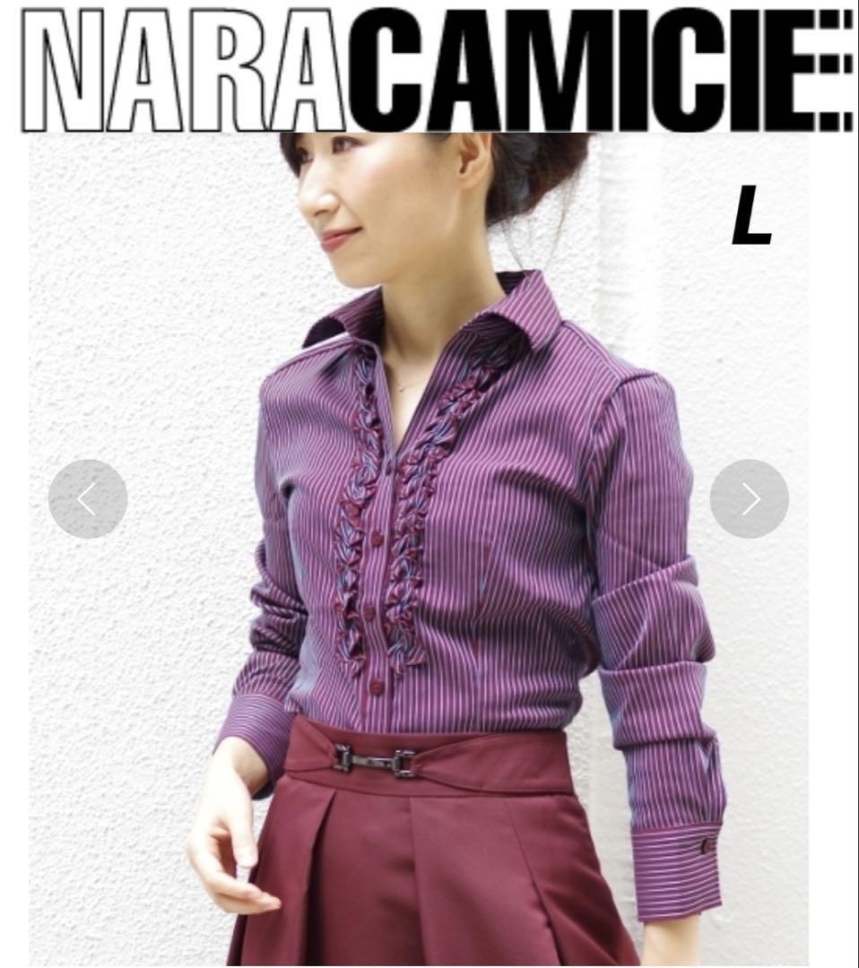 - NARACAMICIE ナラカミーチェ ペンシルストライプ衿付きフリルシャツ パープル系 L