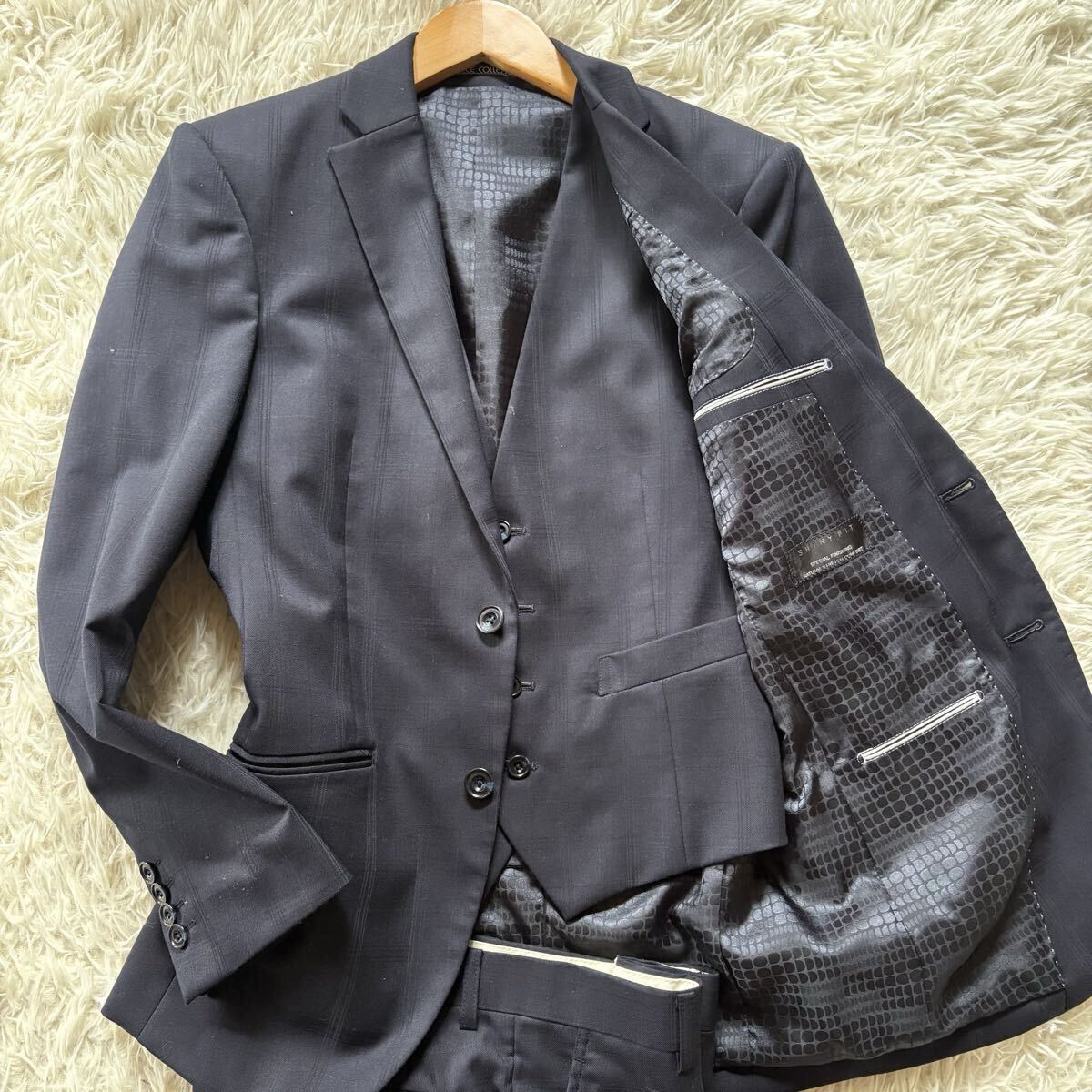 > ◎極美品◎FICCE フィッチェ ドン小西【裏地で魅せるスリーピース】スーツ セットアップ シャドーチェック ビジネス 3ピース 総柄 ネイビー