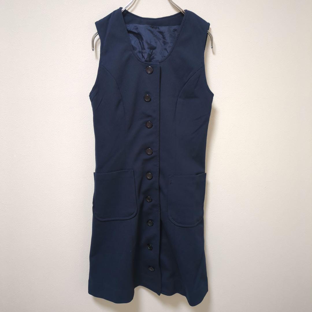 - ミニワンピース(11)ノースリーブ*シャツワンピース*ジレ*Uネック*裏地*紺