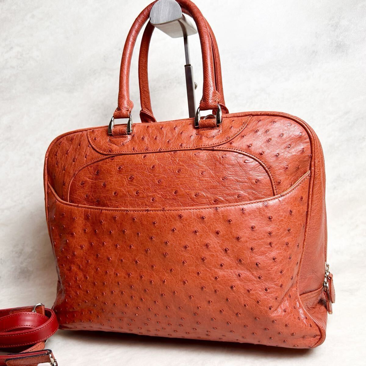 - 【極希少】オーストリッチ 駝鳥革 A4収納可能 エキゾチックレザー ビジネスバッグ ブリーフケース ハンドバッグ 2way オレンジ 希少カラー