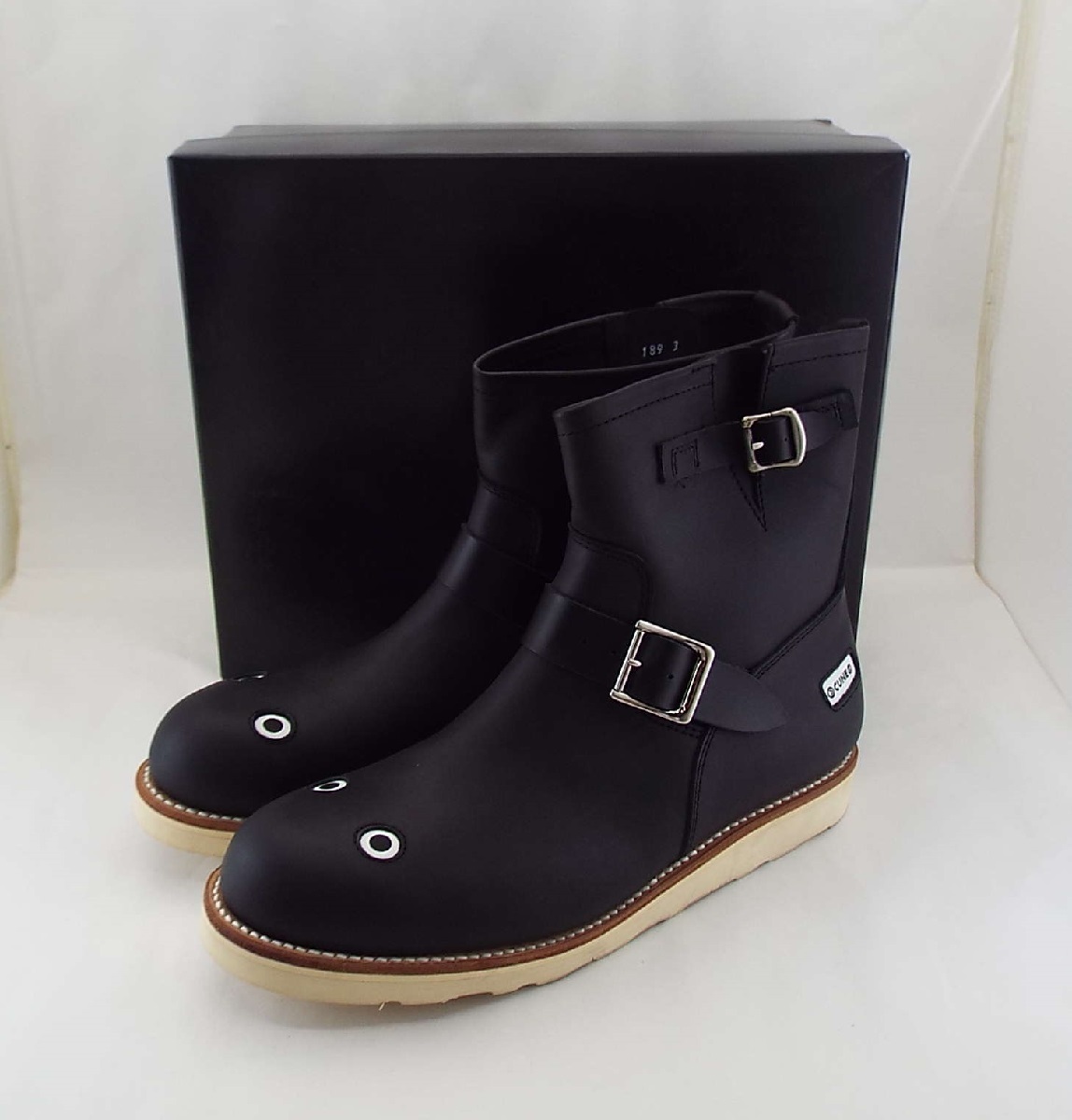 - T2502[ほぼ未使用]CUNE(キューン)ペコジニアブーツ ペコス エンジニアブーツ ウサギがいる レザーシューズ サイズ3 ブラック