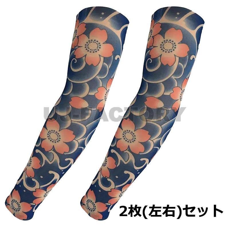 - 【タトゥーアームカバー】★和柄 桜 x2枚セット 和風 伸縮素材 タトゥースリーブ 腕カバー 日焼け UV対策 おしゃれ さくら