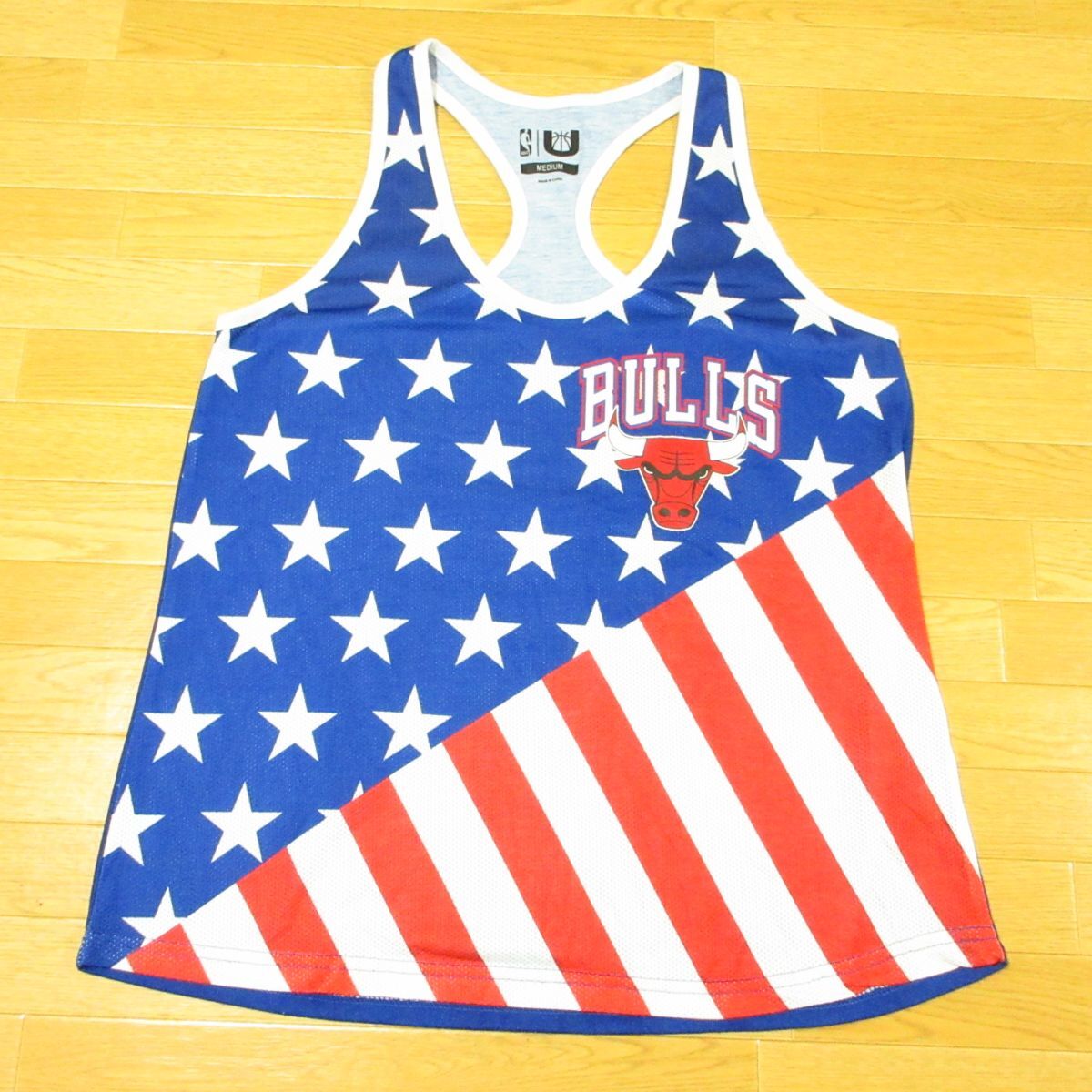 - ◎極美品!NBA BULLS シカゴ ブルズ ユニフォーム マッスル タンクトップ ゲームシャツ 星条旗カラー バスケ メンズ Mサイズ◆AU0867