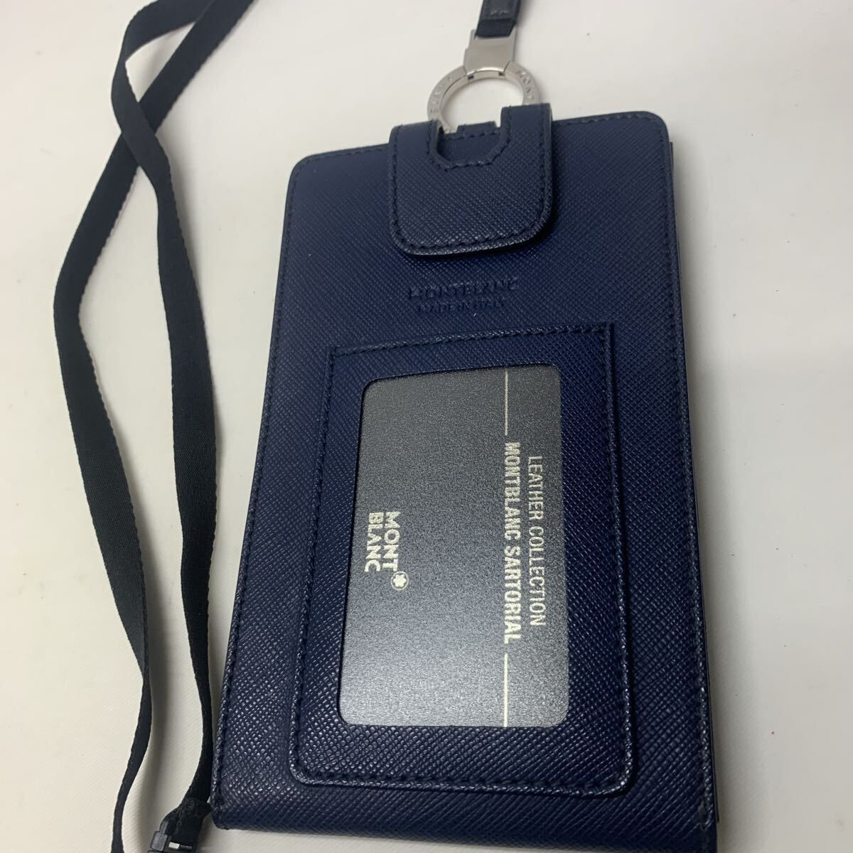 - 【美品】モンブランMONT BLANC SARTORIAL PHONE HOLDER iPhoneケース ホルダー パスケース 社員証 定期入れ カードケース ID 紺 ネイビー