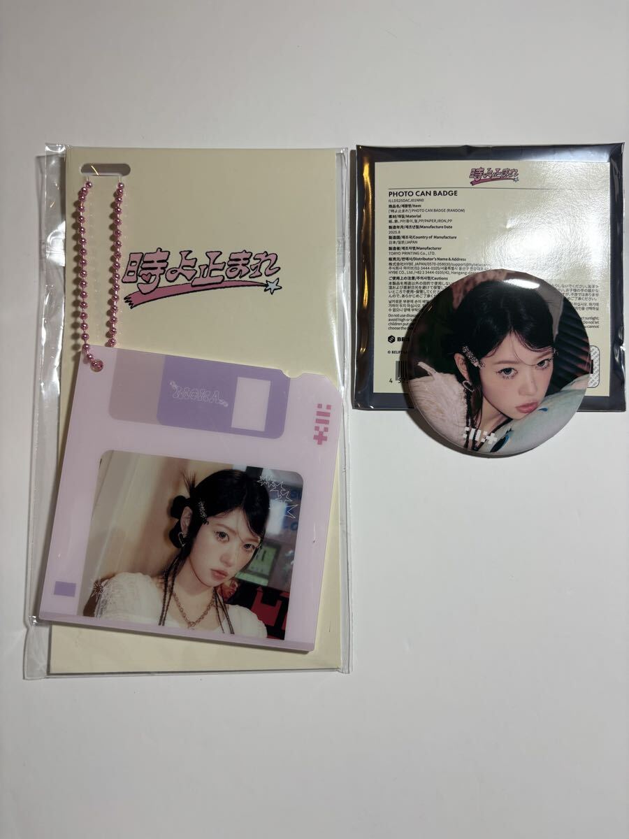 > ILLIT Japan 1st Single 時よ止まれ Official Merch. PHOTO CAN BADGEとFLOPPY DISK CHARM モカ 新品未使用