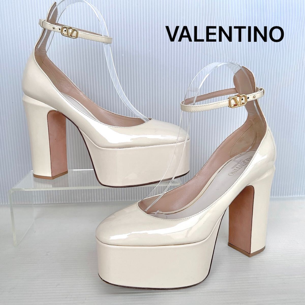 > VALENTINO GARAVANI ヴァレンティノ ストラップ付き 厚底 vロゴ ハイヒール パンプス サンダル 靴 アイボリー 36 シューズ レーディス 美品