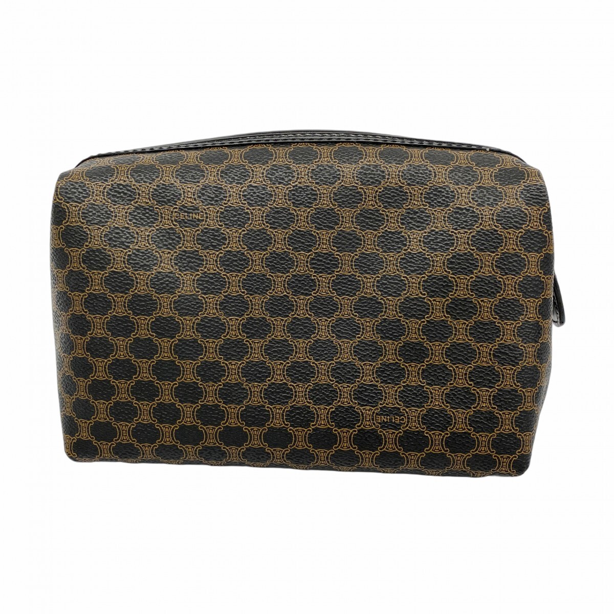 - 【5ic3831-h】セリーヌ ポーチ マカダム PVC ブラック ゴールド金具【中古】レディース