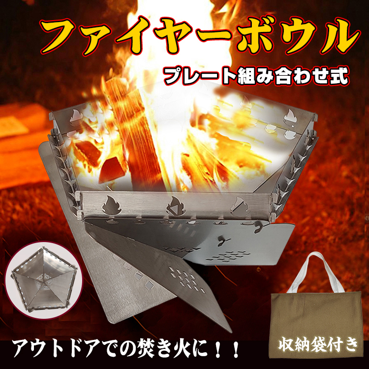 - 【在庫処分セール!】焚き火 台 ソロ おしゃれ 軽量 コンパクト 折りたたみ プレート 組み立てファイヤー ボウル 収納袋 アウトドア od483