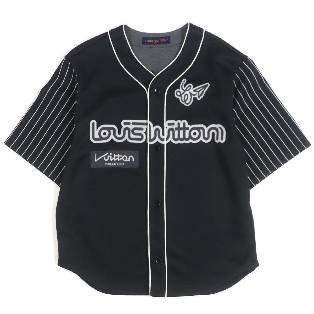 > 極美品▼ルイヴィトン 23SS ロゴナンバリング ショートスリーブ 半袖 ベースボールシャツ 半袖シャツ ブラック S 伊製 正規品 メンズ