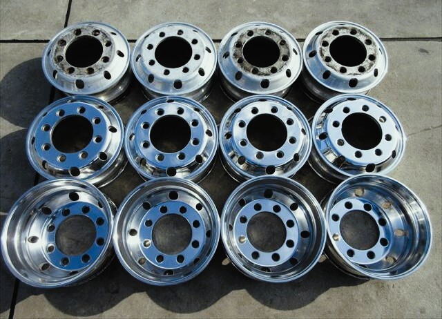 > 送料無料 住金 アルミホイール JIS 球面座 19.5×6.75 147 8穴 鏡面仕上げ済み 12本セット 美品 4軸低床
