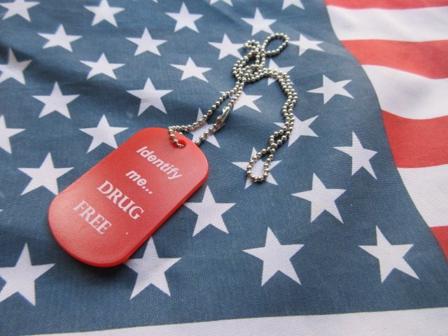 > TS2★在日米軍 福利厚生部払下げ 薬物未使用スローガン アイテム DOG TAGタイプのネックレス/ドッグタグ/バッグタグ等に