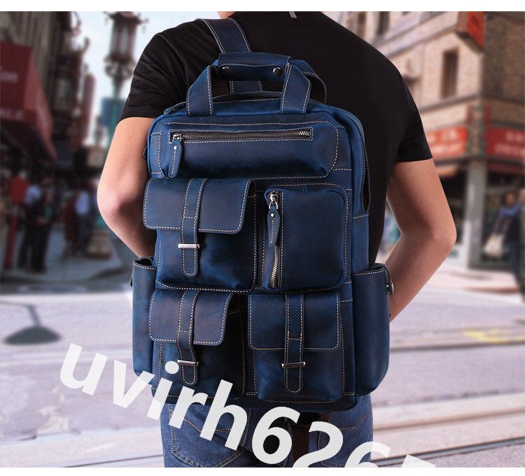 - リュックサック メンズリュック牛革 大容量 ビジネスリュック トートバッグ PC対応 本革 A4書類 通学通勤 鞄 出張 多機能