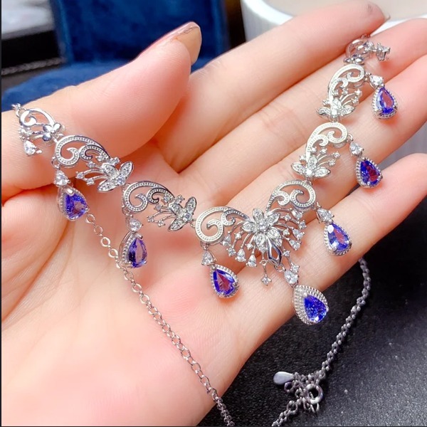 - 100% 天然タンザナイトネックレス 鑑別付き 天然石 ナチュラル 宝石 ◆最初の入札者様は開始価格で購入可能 Yu_25882