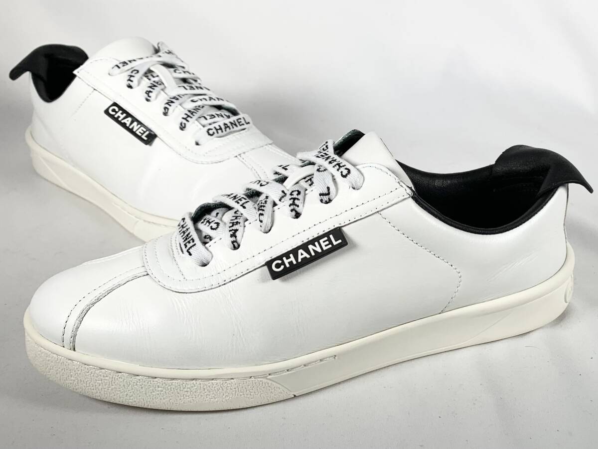 > 【正規品】極美品 シャネル CHANEL G34085 ココマーク CC レザー ラバーソール クラシック スニーカー シューズ 靴 レディース 36 白