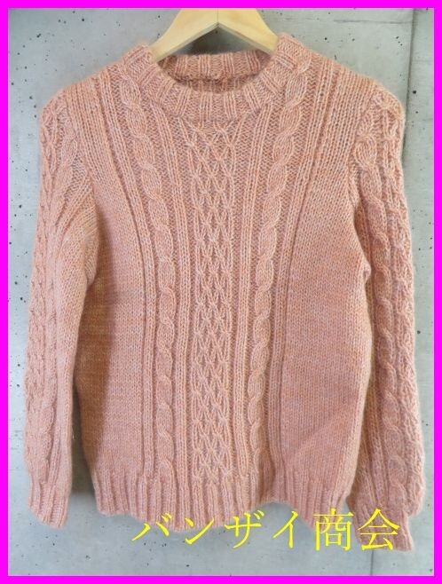 > 2290b17◆ハンドニット◆ケーブル編み ウールニットセーター/手編み/ハンドメイド/カーディガン/ベスト/レトロ古着/レディース/女性/婦人