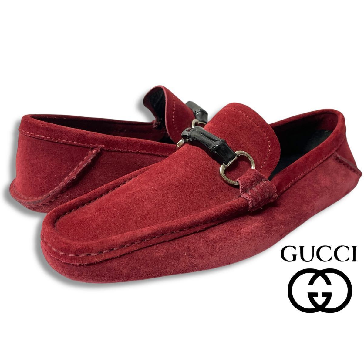- 1 美品 正規品 GUCCI グッチ 51910 スエードレザー バンブー ホースビット ローファー モカシン シューズ スリッポン レッド系 6