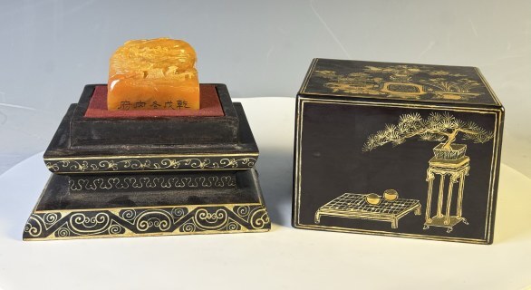 - 『三希堂』 清代 乾隆内務府造 老寿山石 田黄石彫 山水鈕印章 細工 手彫り 中国古賞物 古美術 重量:436.3g 高さ6.1cm 底径6cm C27
