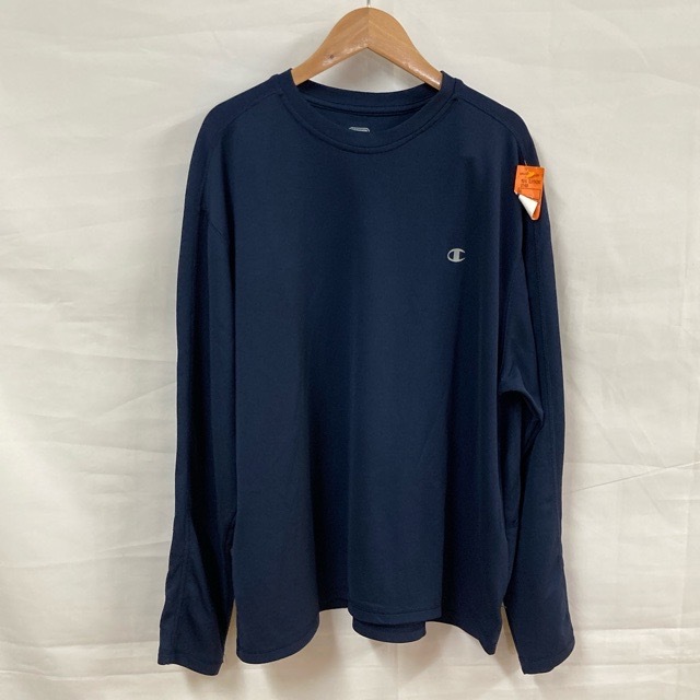 - A1072 チャンピオン XL アメリカ古着 ポリエステル 長袖Tシャツ ネイビー系 Champion メンズ
